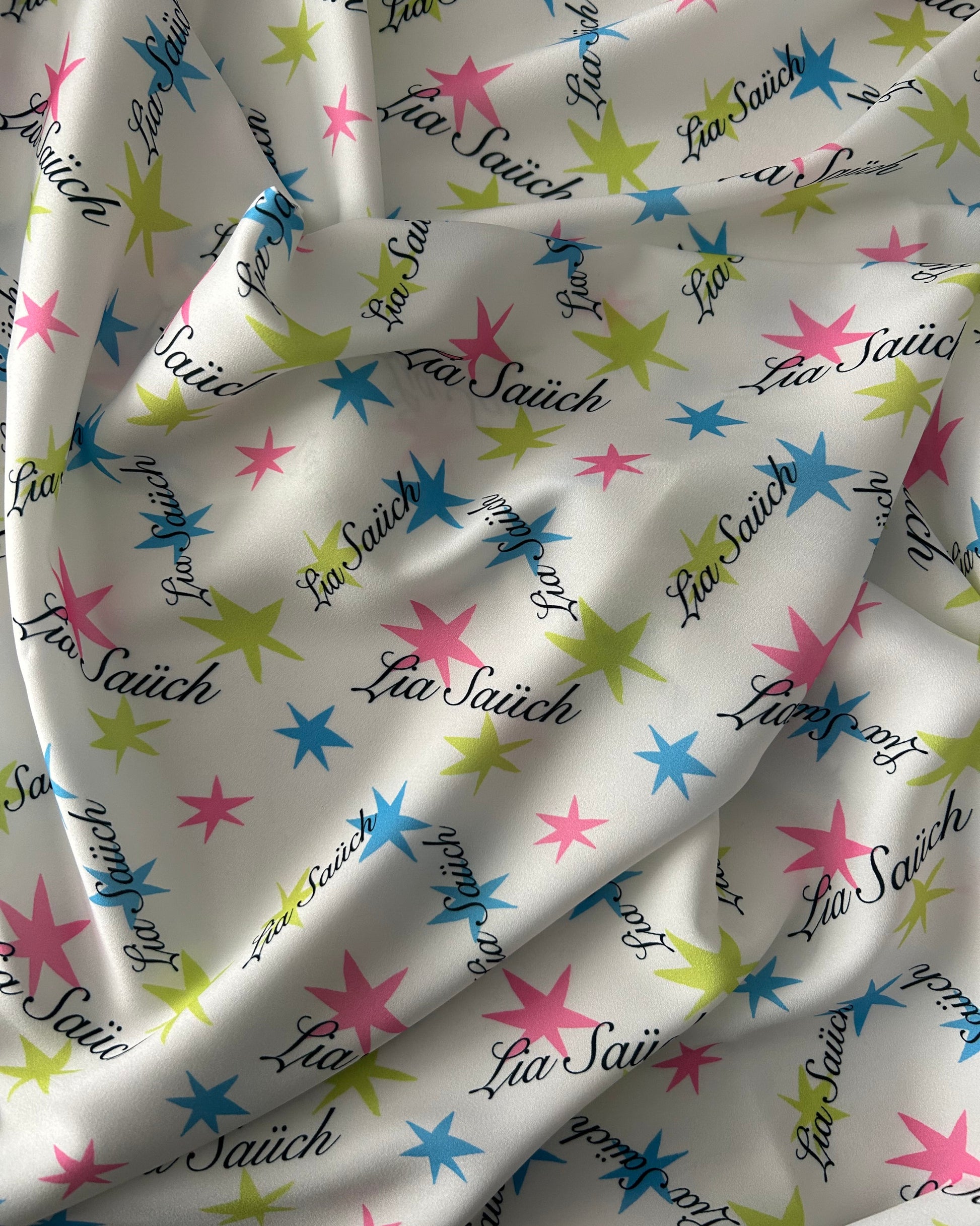 Tejido de semiseda con diseño original ilustrado digitalmente.