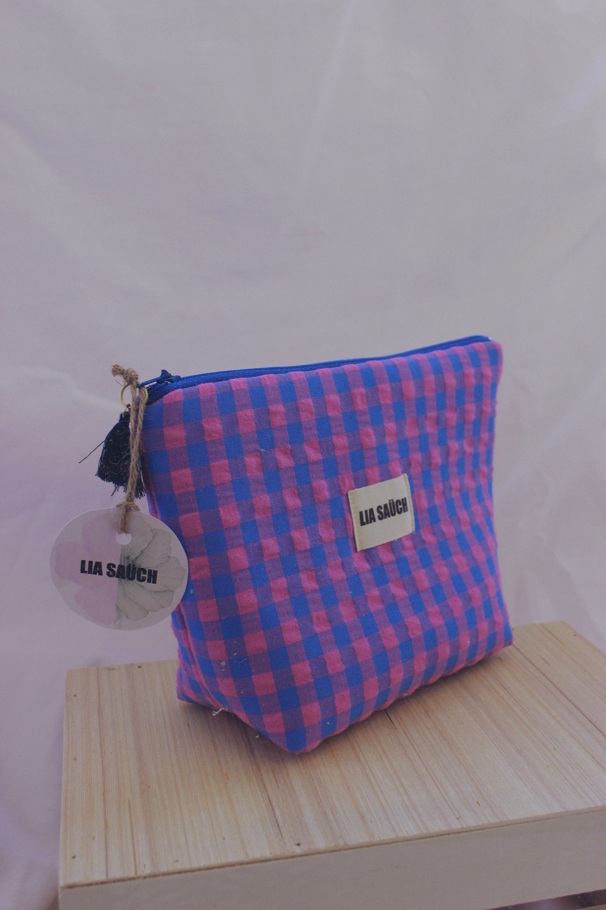 Nuestros neceseres están confeccionados con tejido de algodón en estampado Vichy y cierre de cremallera a color complementada con un borlón de algodón.
