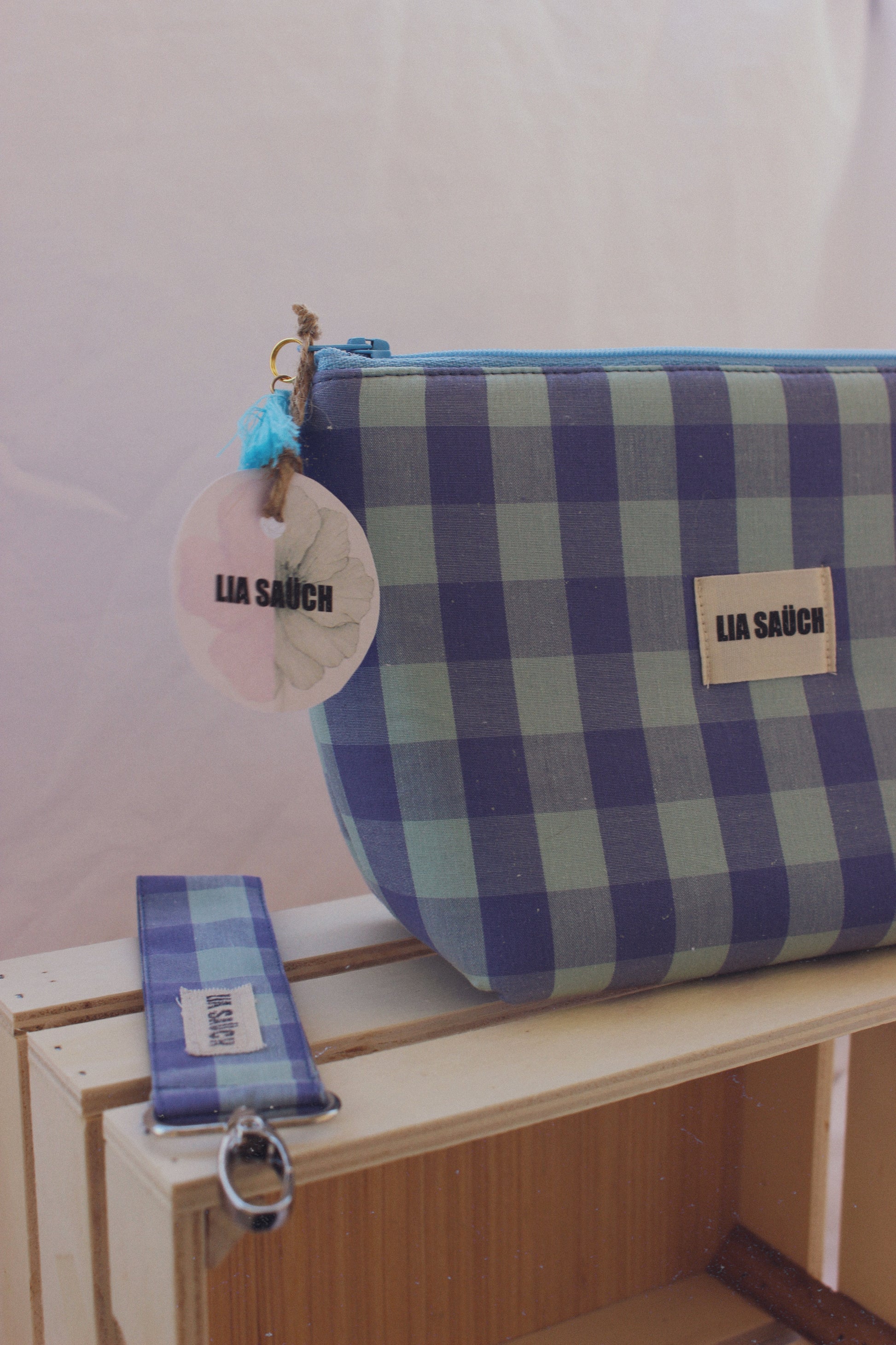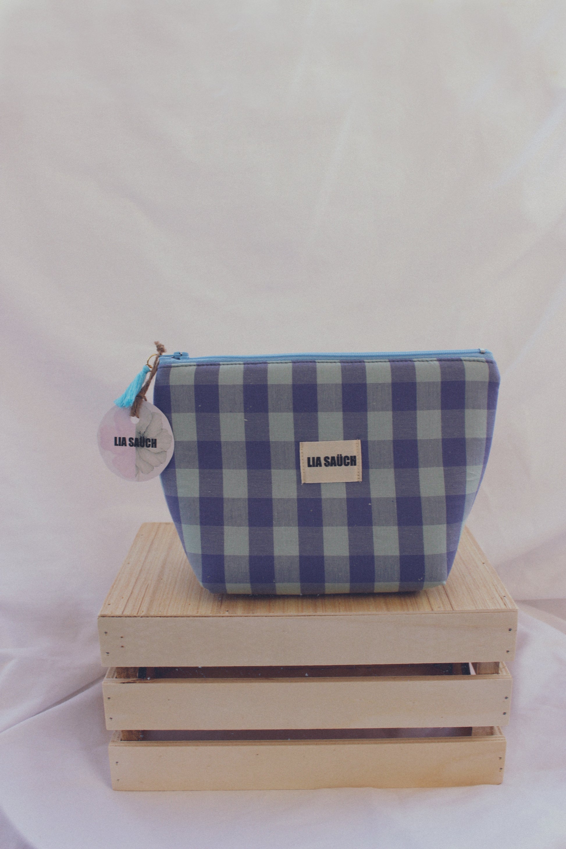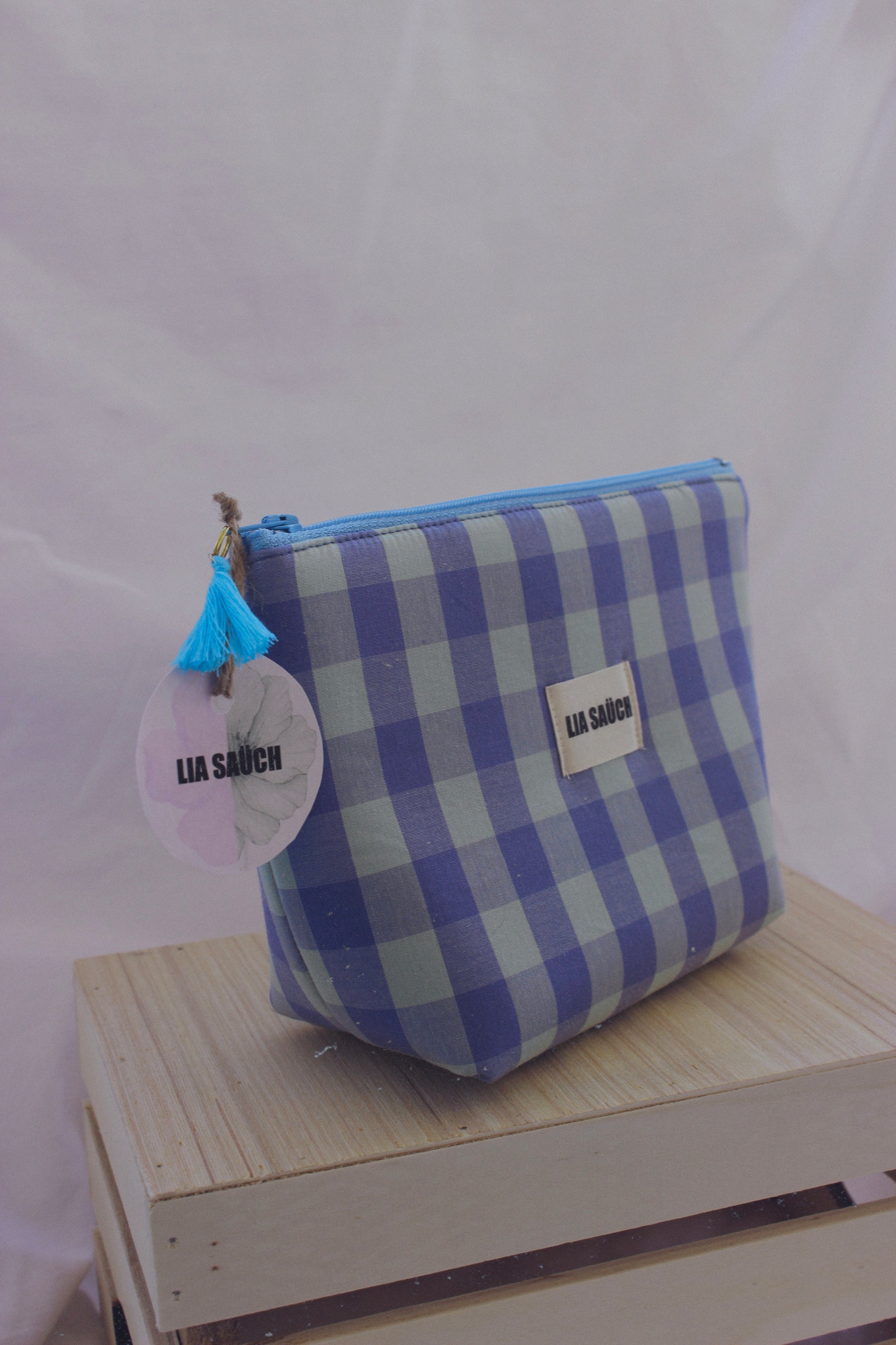 Nuestros neceseres están confeccionados con tejido de algodón en estampado Vichy y cierre de cremallera a color complementada con un borlón de algodón.